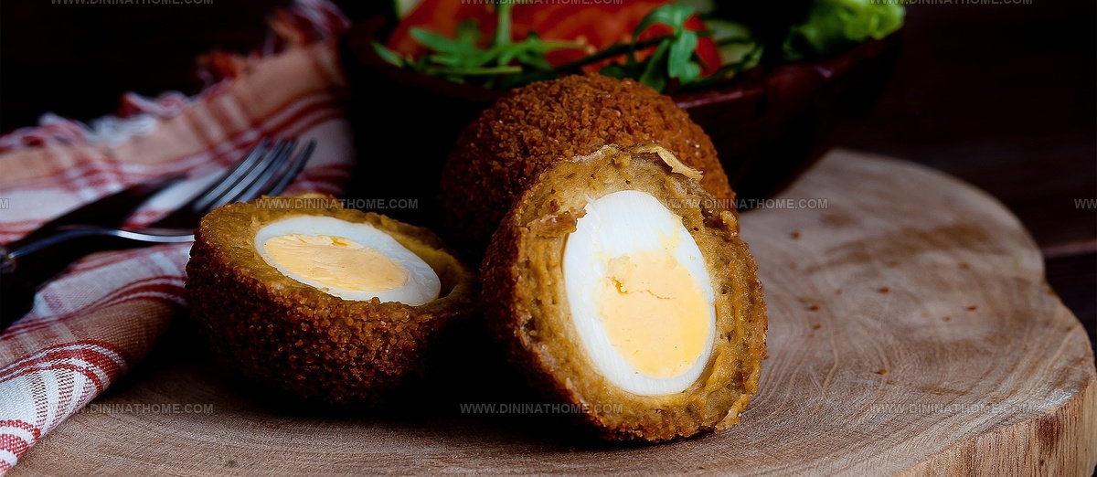 Traditional preparation involves carefully wrapping boiled eggs with seasoned meat mixture before breading and deep-frying to achieve a crunchy golden shell.