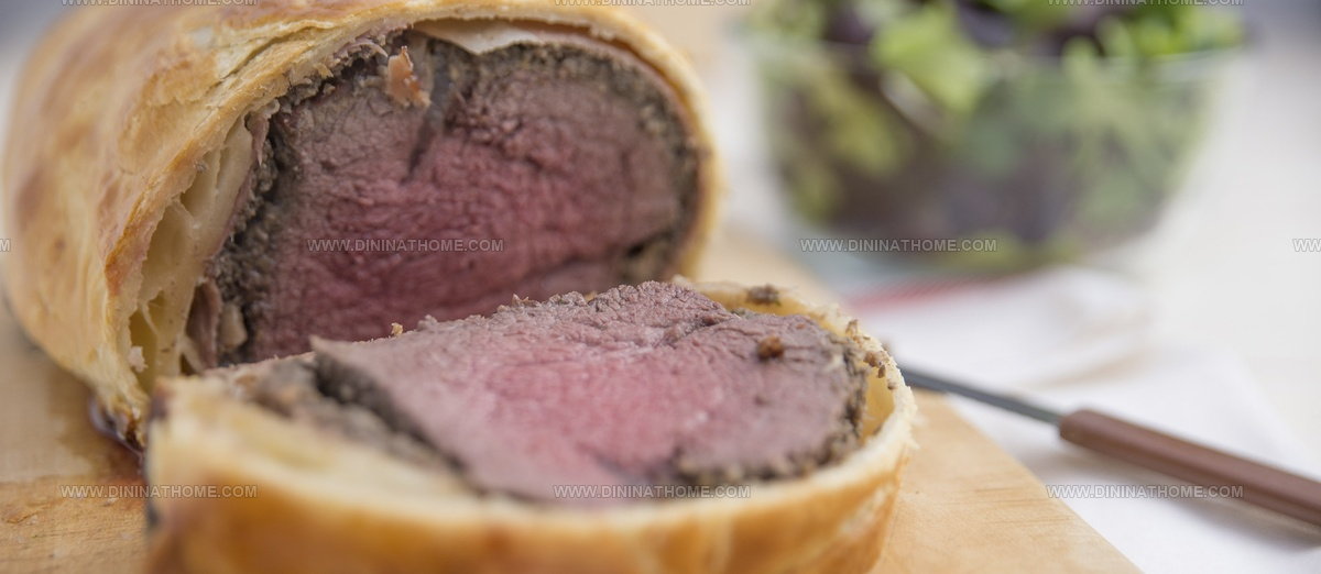 Beef Wellington represents an elegant British dish featuring a tender beef filet wrapped in buttery puff pastry after being coated with rich pate and mushroom duxelles.