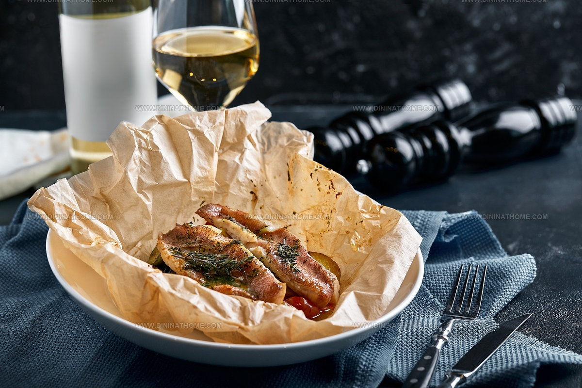 Hot oil and white wine transform the fish during careful baking, creating a rich and aromatic seafood dish.