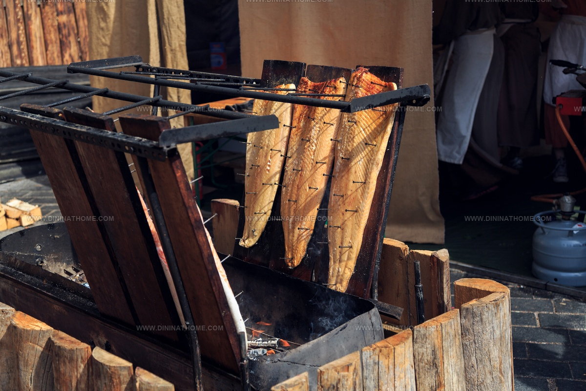Wood-fired cooking techniques allow precise temperature control and gradual heat distribution across the fish's surface.