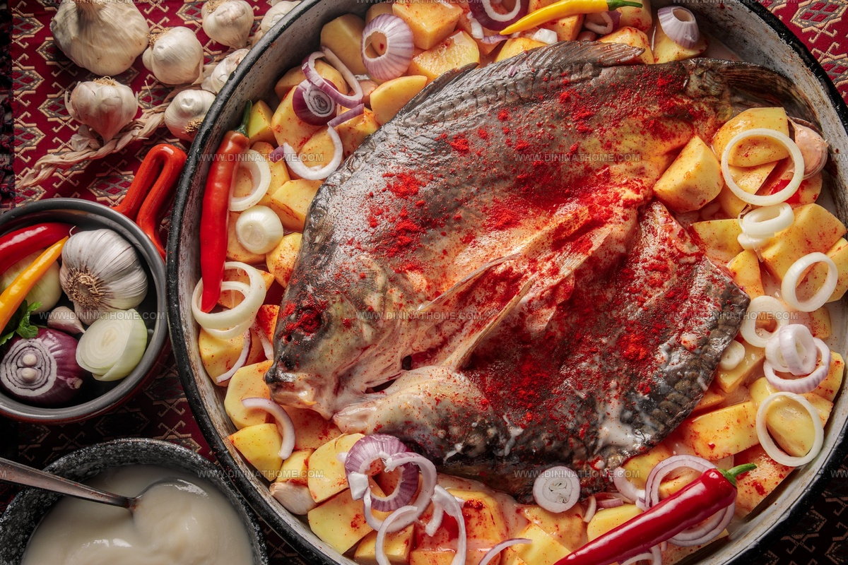 Traditional preparation involves cooking the fish until it becomes tender and succulent, absorbing the robust spice blend.