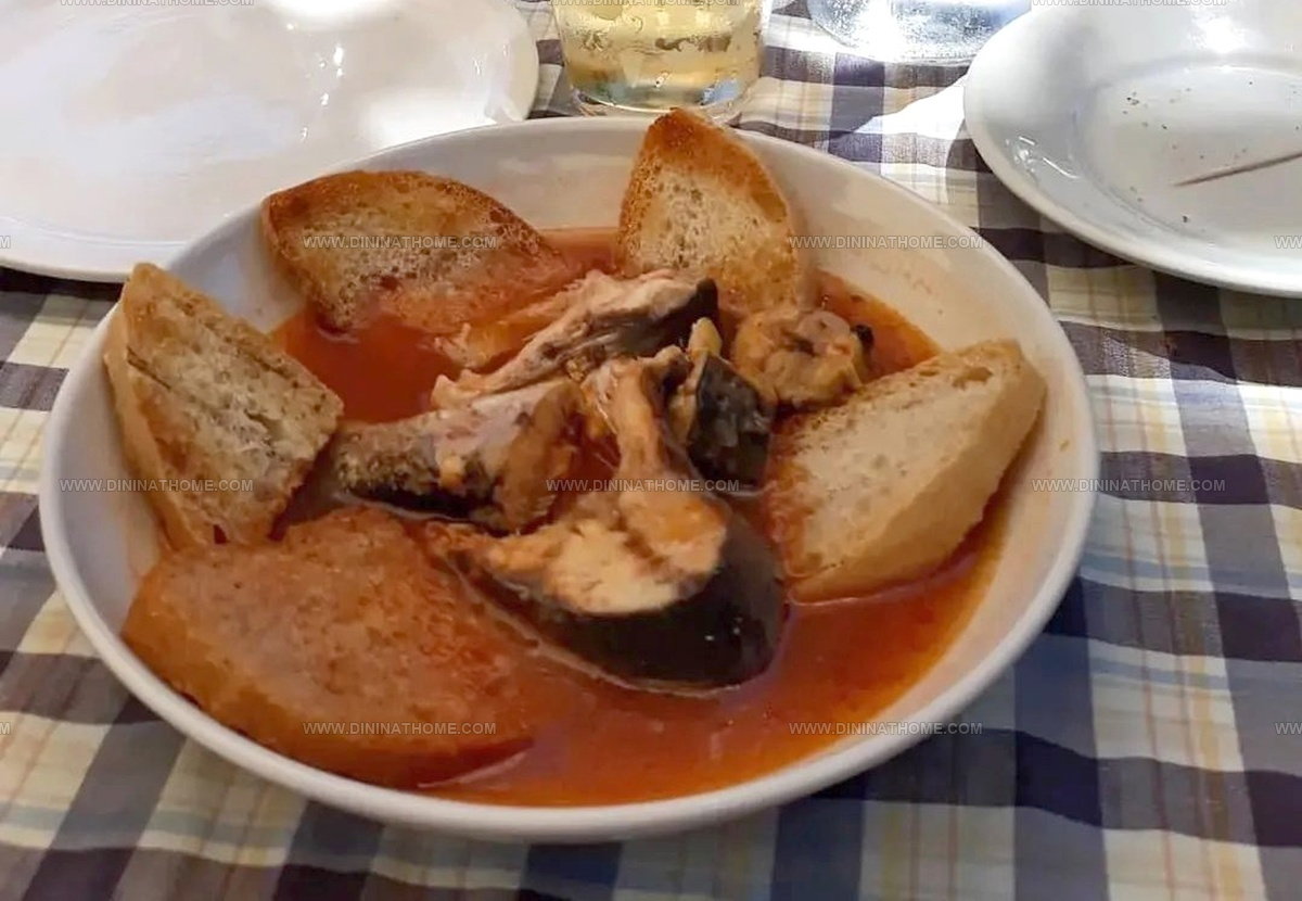 Tench, eel, pike, and perch form the protein base of this hearty dish, complemented by mint, potatoes, onions, garlic, tomatoes, and stale bread.