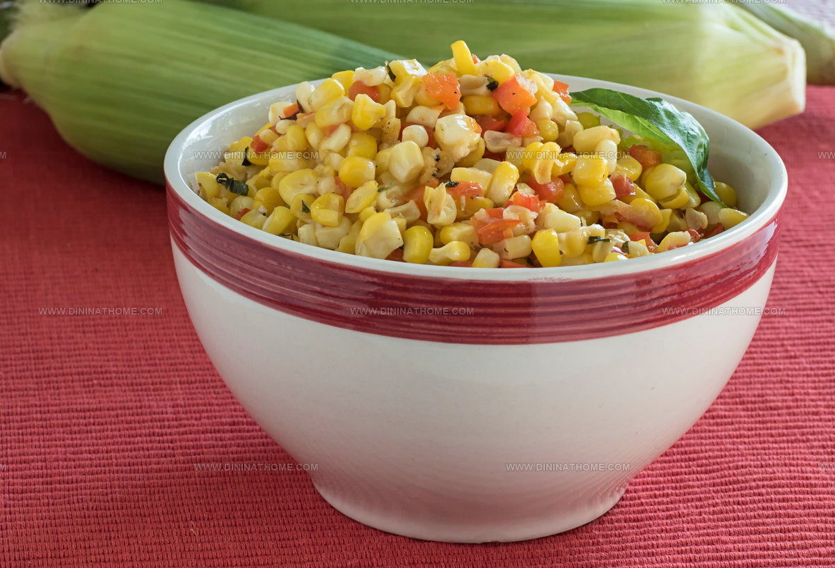 Regional farmers traditionally harvest fresh corn and peppers for this quick seasonal preparation.