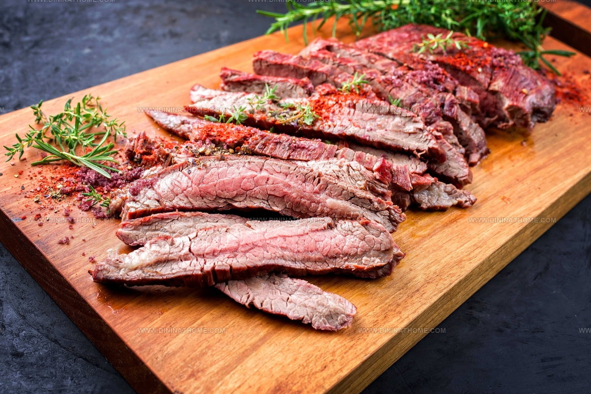 Sliced against the grain, the steak ensures maximum juiciness and optimal eating experience.