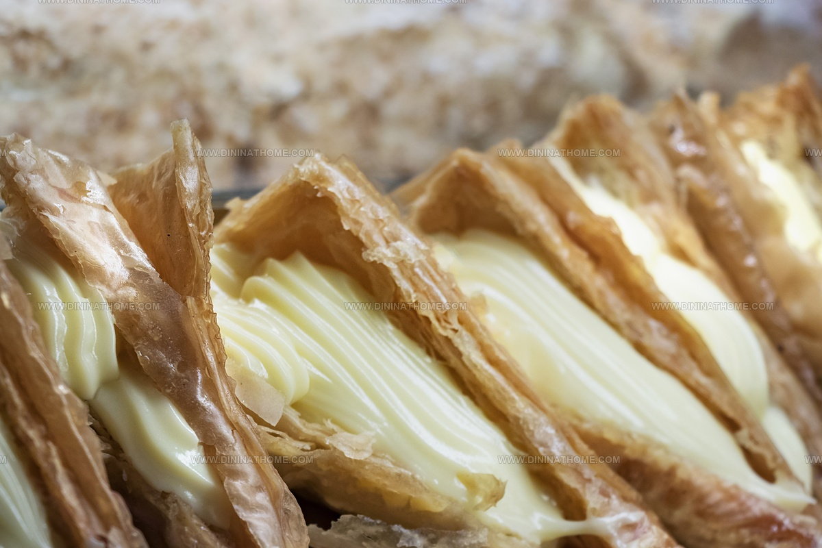 Sweet vanilla custard made from egg yolks, flour, milk, and cream creates a luscious interior filling for each pastry.