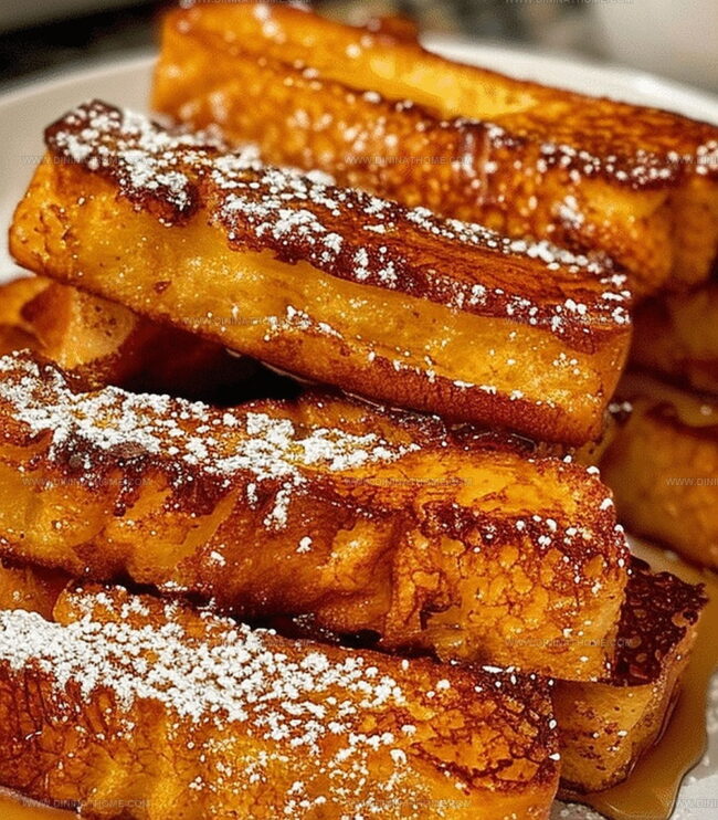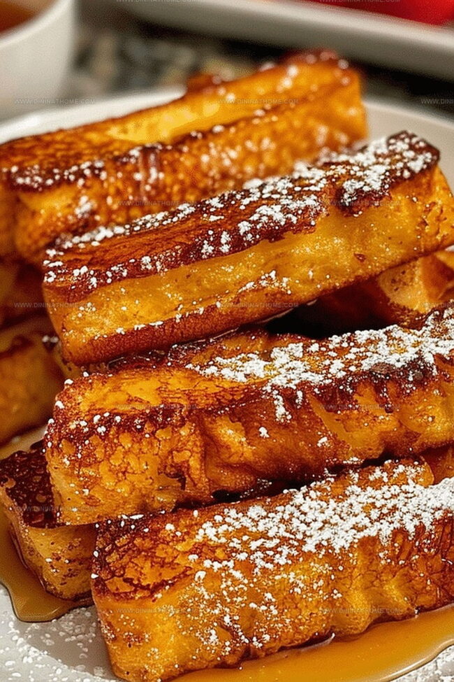 - Transfer the freshly prepared toast sticks to a serving plate, accompanying them with rich maple syrup and an optional delicate dusting of powdered sugar for enhanced indulgence.