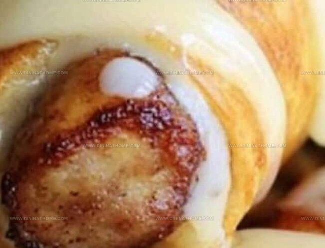 Buttery crescent rolls wrap around savory sausages, creating a mouthwatering combination.