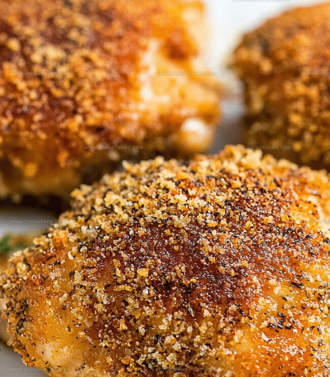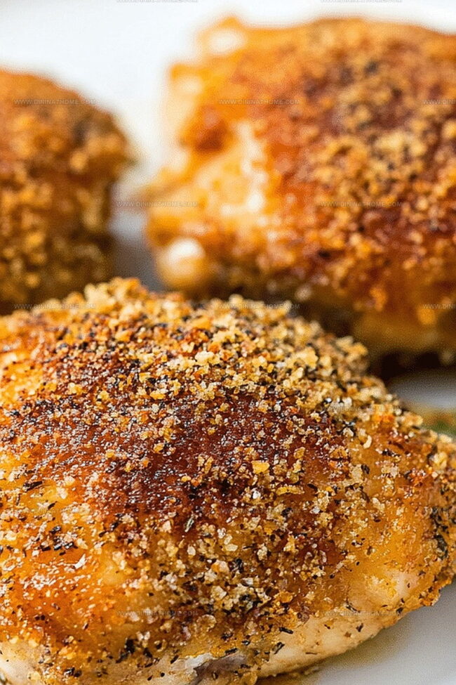 - Pat chicken thighs completely dry before coating to ensure crispy, well-adhered breading that doesn’t become soggy during baking.