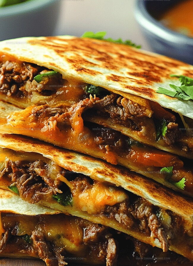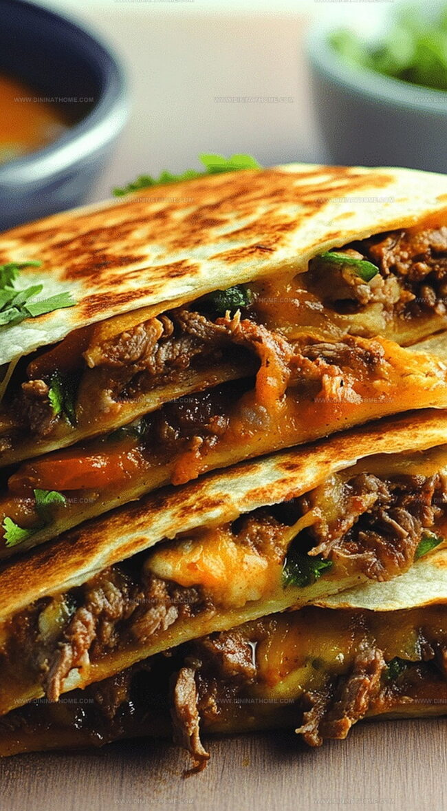 Crispy tortillas loaded with savory beef quesadilla promise a mouthwatering Mexican-inspired feast right in your kitchen.