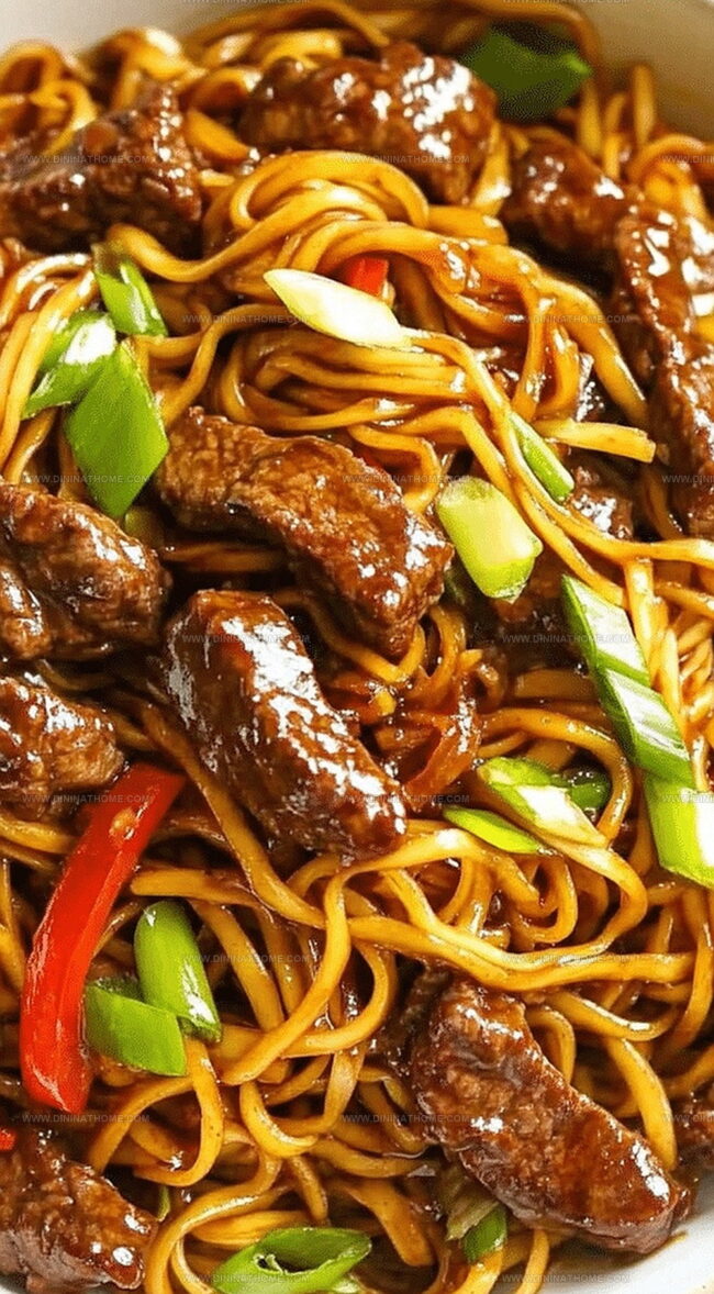 - Gently fold noodles into the beef and vegetable mixture, ensuring each strand becomes luxuriously coated with the sticky, aromatic sauce.