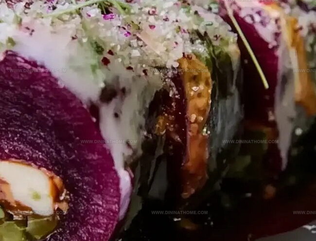 Colorful Mediterranean “Beet Roll” brings zesty Mediterranean flavors into a simple, nutritious wrap. Crisp vegetables, tangy herbs, and earthy beets create a delightful culinary experience that will satisfy you with each delicious bite.