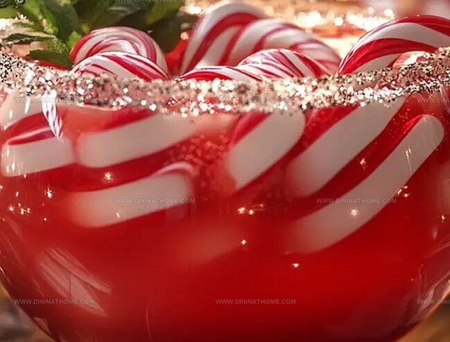 - For an extra touch of holiday magic, create a festive rim by delicately dipping glass edges in water, then rolling them in finely crushed candy cane fragments.