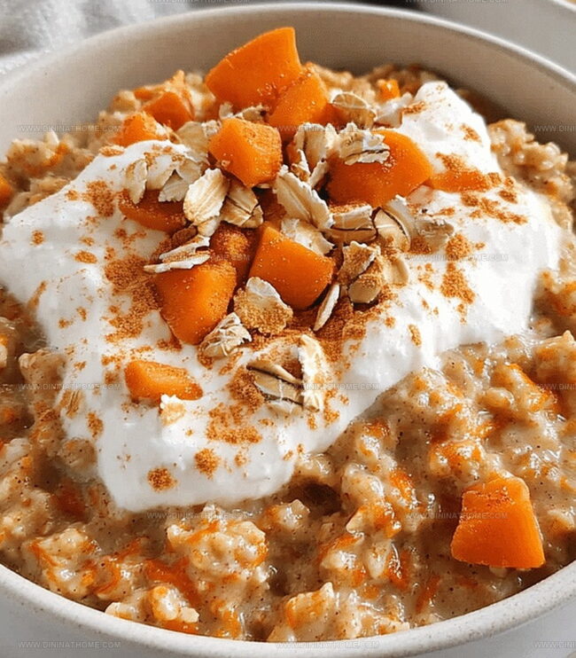 Mornings brighten when creamy carrot cake oatmeal arrives at your breakfast table, promising comfort and deliciousness.