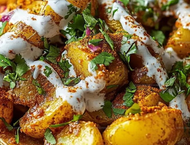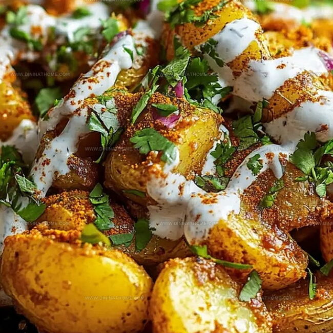 Potatoes:Roasting Spices and Seasonings:Herbs and Fresh Ingredients:Oil and Base Ingredients:Sauce and Dressing Components:Garnish and Finishing Touches:Potato Instructions with Chaat Masala & Yogurt Drizzle