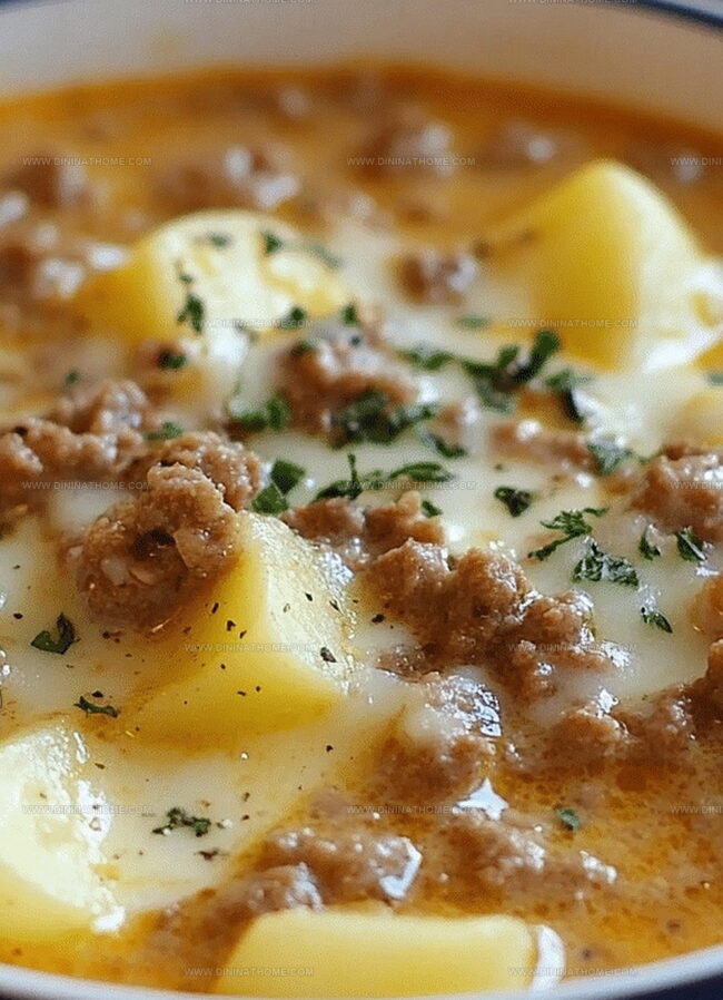 Hearty homemade Cheesy Hamburger Potato Soup delivers comfort in a bowl, blending rich ground beef with creamy potatoes and melted cheese. Warm spices and silky texture invite you to savor each spoonful of this satisfying meal.