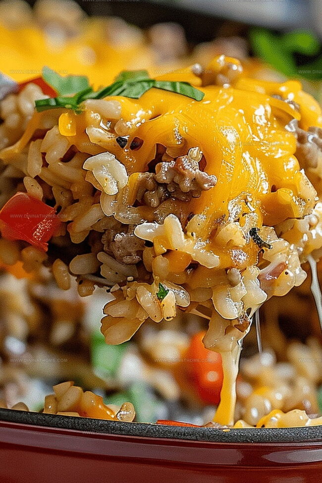 Comfort meets creativity in this mouthwatering cheesy hamburger rice casserole that promises pure satisfaction.