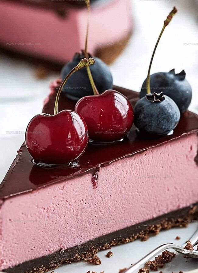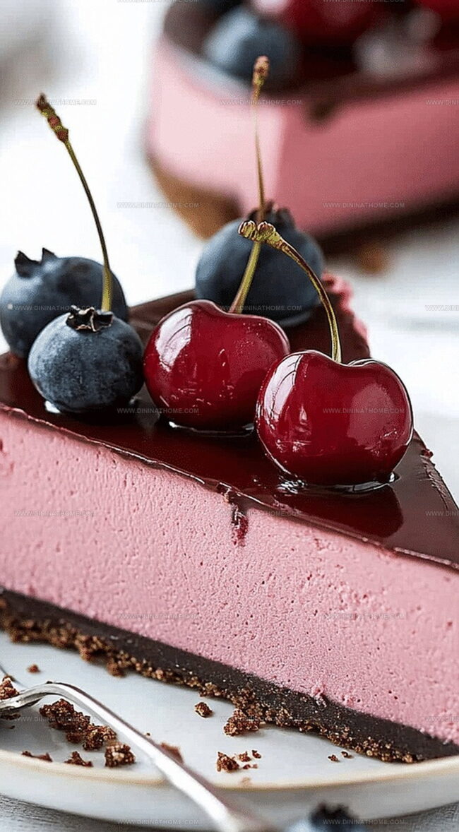 Sweet dreams come alive with a decadent cherry chocolate cheesecake that promises pure indulgence.