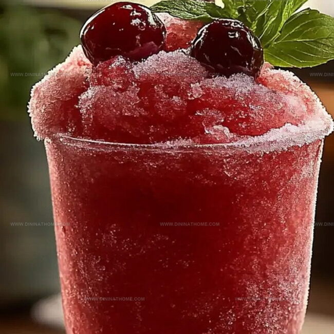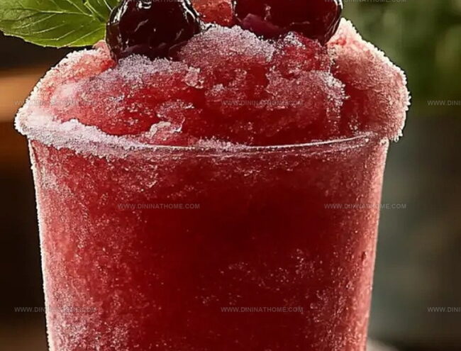 - Add crushed ice and frozen cherries, creating a base for a frosty, vibrant beverage.