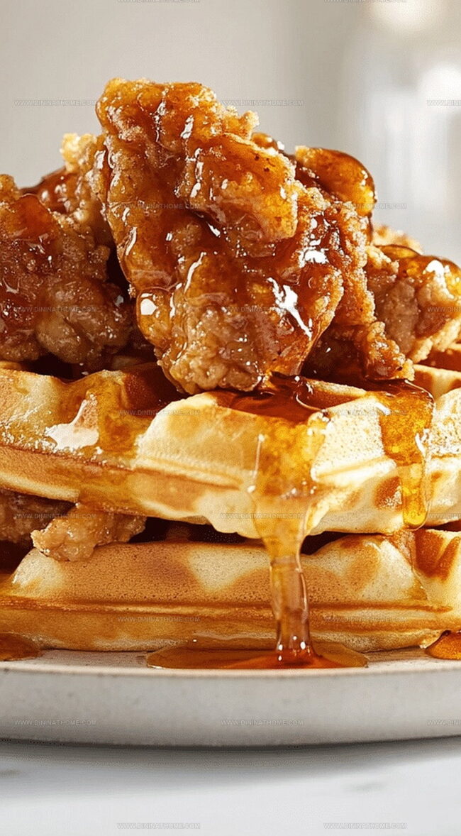 - Plate golden waffles as a base, strategically arranging crispy fried chicken on top, then generously drizzle pure maple syrup across the dish for a harmonious sweet-savory experience.
