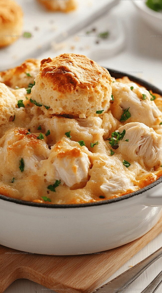 Creamy chicken nestles beneath a golden, crispy topping that melts in your mouth.