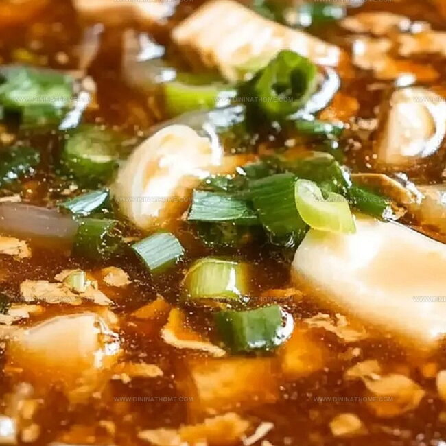 Spicy Chinese-style hot and sour soup delivers a perfect balance of tangy heat and rich umami flavors. Silky textures and bold ingredients create a comforting bowl that warms you from the first spoonful.