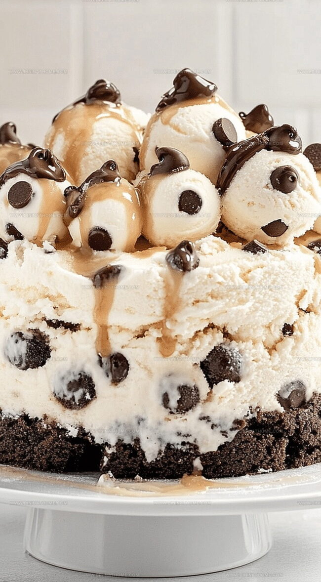 Cookie Base:Ice Cream Layer:Decorative Toppings:Step-By-Step Guide To Chocolate Chip Cookie Dough Ice Cream Cake