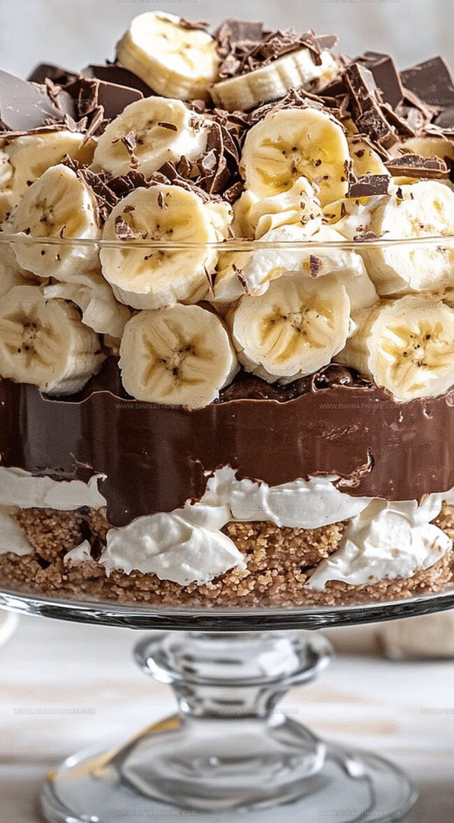 Creamy layers of dreamy chocolate peanut butter banana cream trifle promise pure indulgence for dessert enthusiasts.