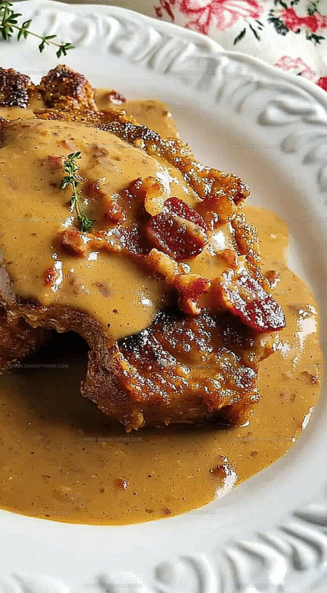 - Lavishly drench the crispy pork chops with the bacon-infused gravy, creating a decadent dish that marries crunchy meat with a rich, creamy sauce.