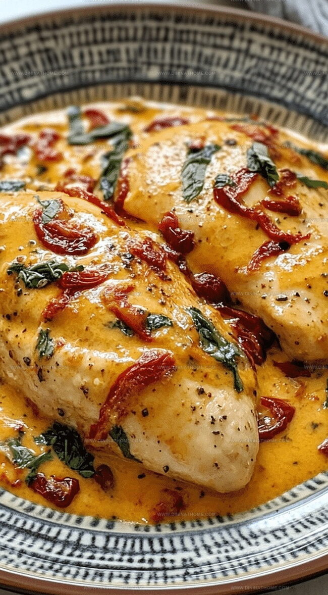 Culinary magic unfolds with this Creamy Tuscan Chicken, blending rich Italian flavors and silky textures. Succulent chicken nestles in a luxurious sauce, promising a delightful journey through Mediterranean-inspired comfort you’ll savor to the last bite.