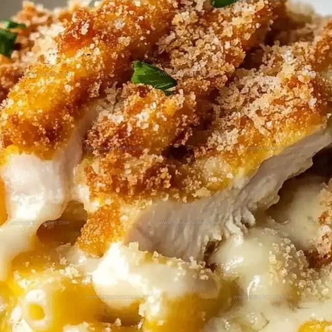 Creamy comfort meets crunchy delight in this irresistible crispy chicken mac & cheese, blending Southern comfort with gourmet flair. Cheesy pasta topped with golden-brown chicken promises a mouthwatering experience you won’t forget.