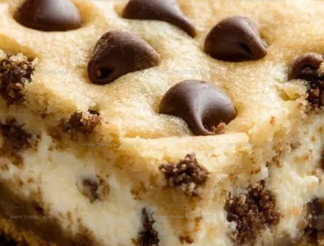 Irresistible chocolate chip cheesecake bar bites deliver a luxurious blend of creamy cheesecake and classic chocolate chip cookie flavors. Rich layers of indulgence melt on your palate, promising pure dessert bliss with each delectable bite.