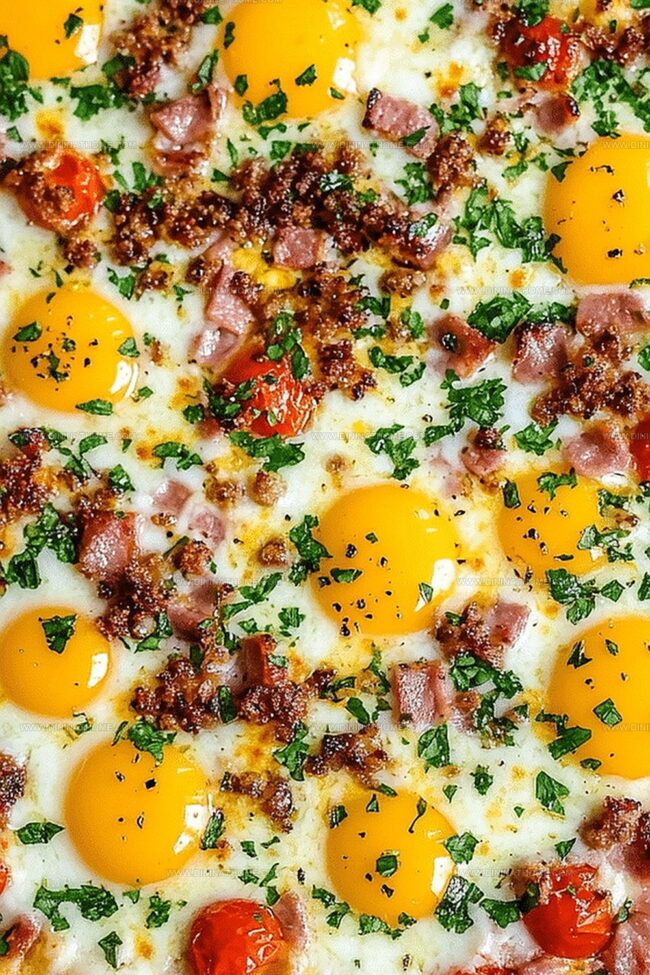 - Carefully crack whole eggs directly onto the pizza, spacing them evenly to ensure each slice gets a perfect sunny-side-up topping.