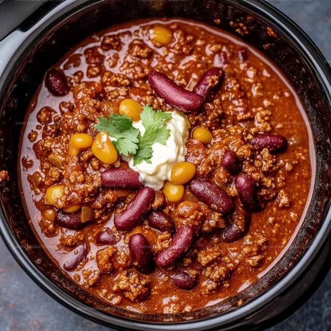 Ladle the steaming chili into bowls and top with your favorite garnishes like pico de gallo, crispy tortilla chips, shredded cheese, or creamy avocado slices.