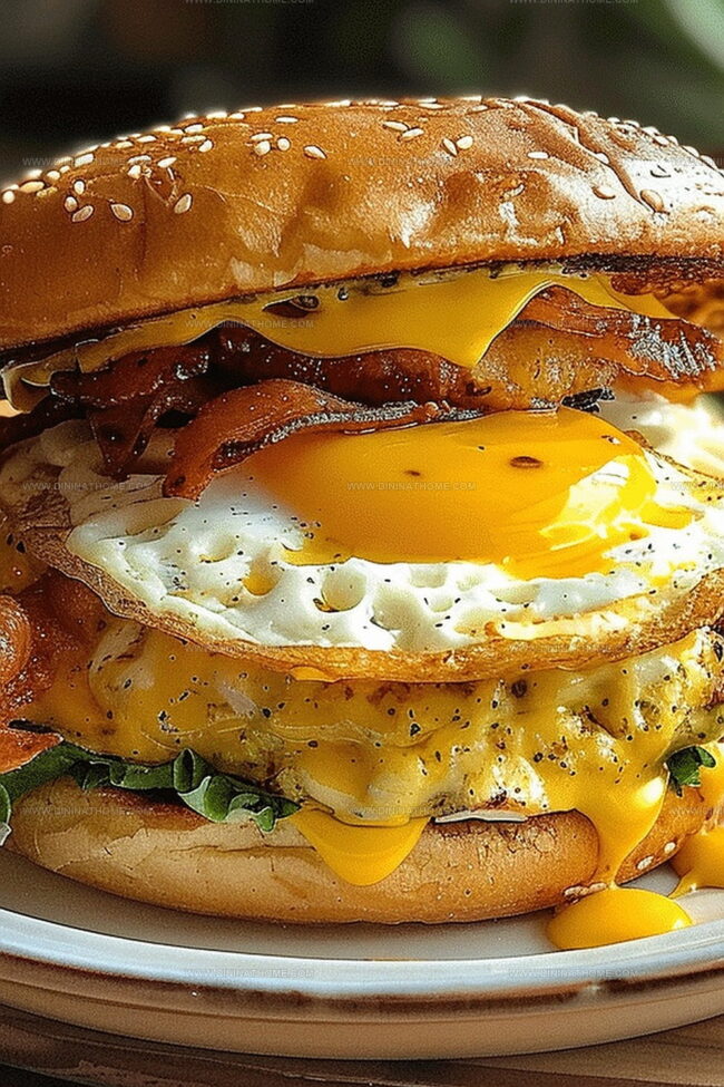 - Crown the sandwich by positioning the top bun, pressing gently to meld all components into a cohesive breakfast delight.