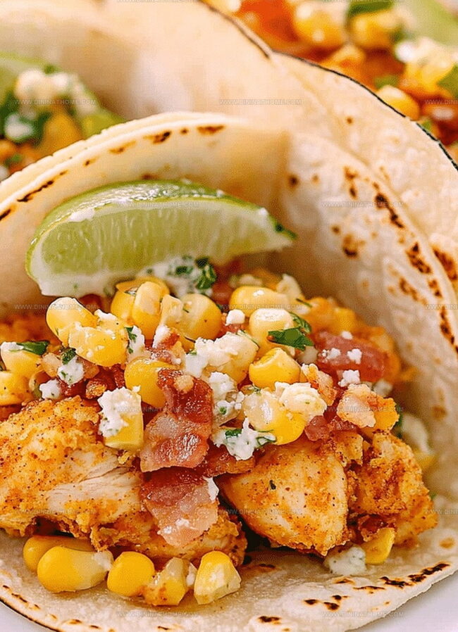 Mouthwatering Fried Chicken Street Corn Tacos combine Mexican street corn magic with crispy chicken and zesty jalapeño lime ranch. Bacon bits and bold flavors make these tacos an irresistible feast you’ll crave again and again.