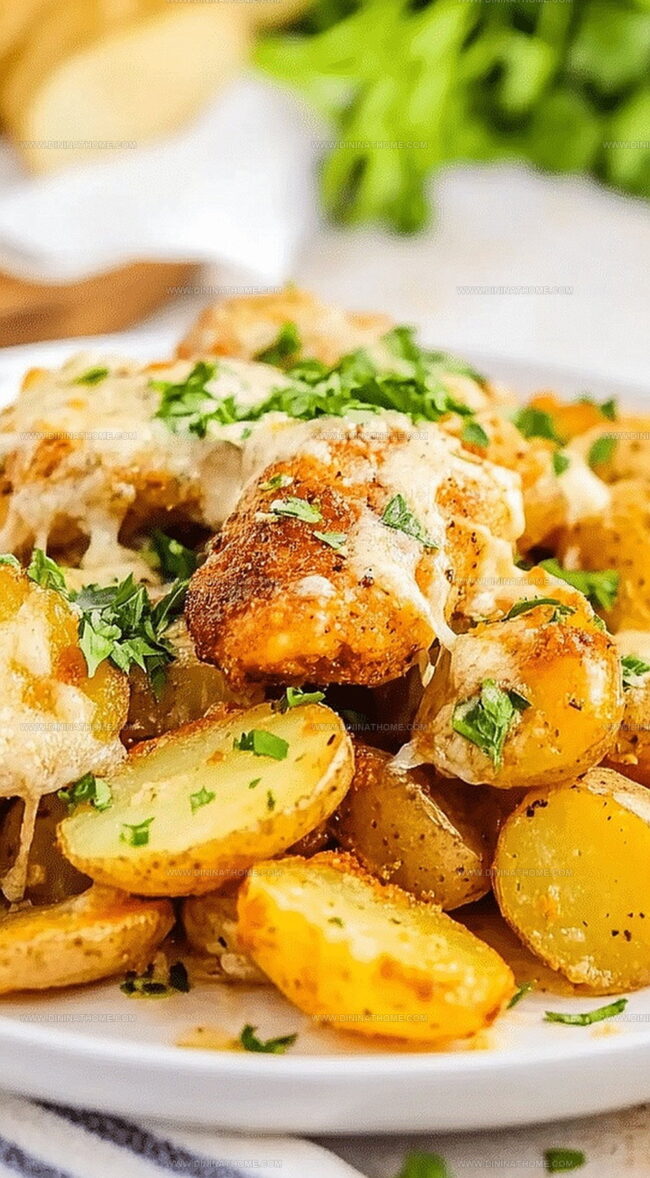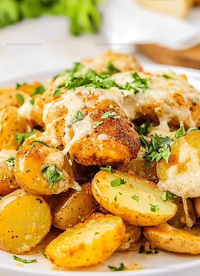 Sizzling garlic parmesan chicken and potatoes skillet brings comfort straight from a rustic Italian kitchen to dinner tables everywhere. Savory herb-infused chicken mingles with crispy golden potatoes, promising a hearty meal that satisfies deep hunger and warms souls with each delicious bite.