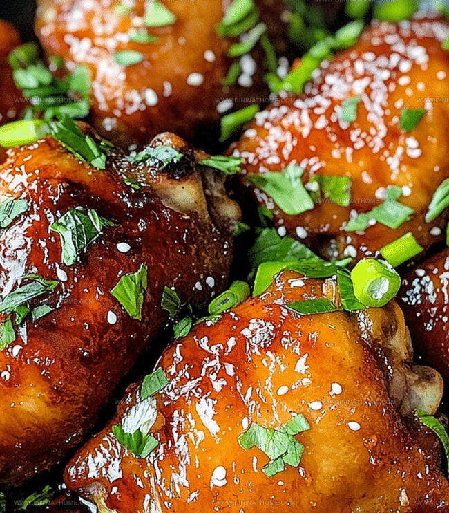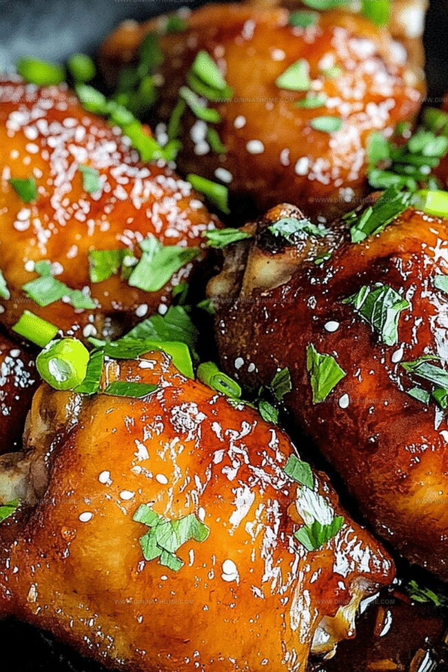 - Transfer chicken thighs to a serving platter, drizzling any residual caramelized glaze over the top for maximum flavor intensity. Garnish optionally with fresh herbs or green onions for added visual appeal.