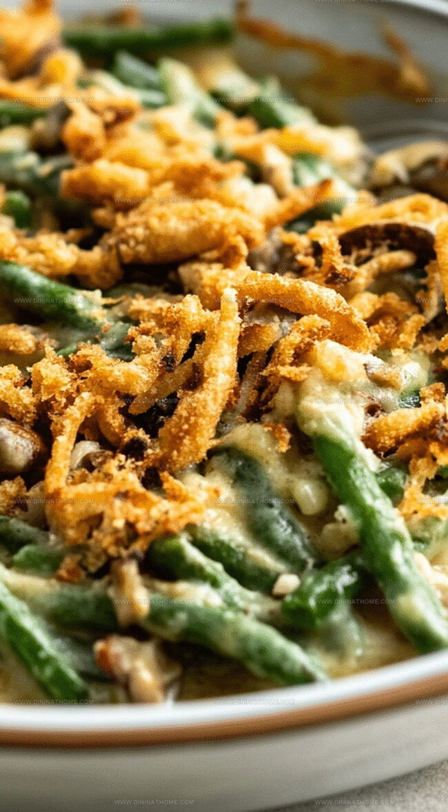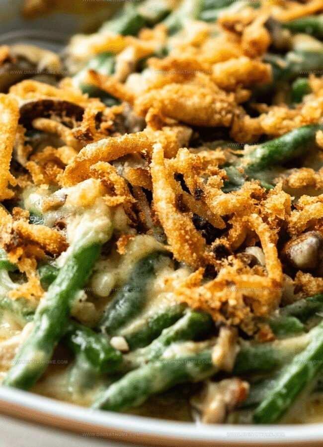 Hearty green bean casserole delivers classic comfort with creamy mushroom sauce and crispy onion topping. Homemade goodness brings warmth to your table, inviting family and friends to savor this timeless side dish.