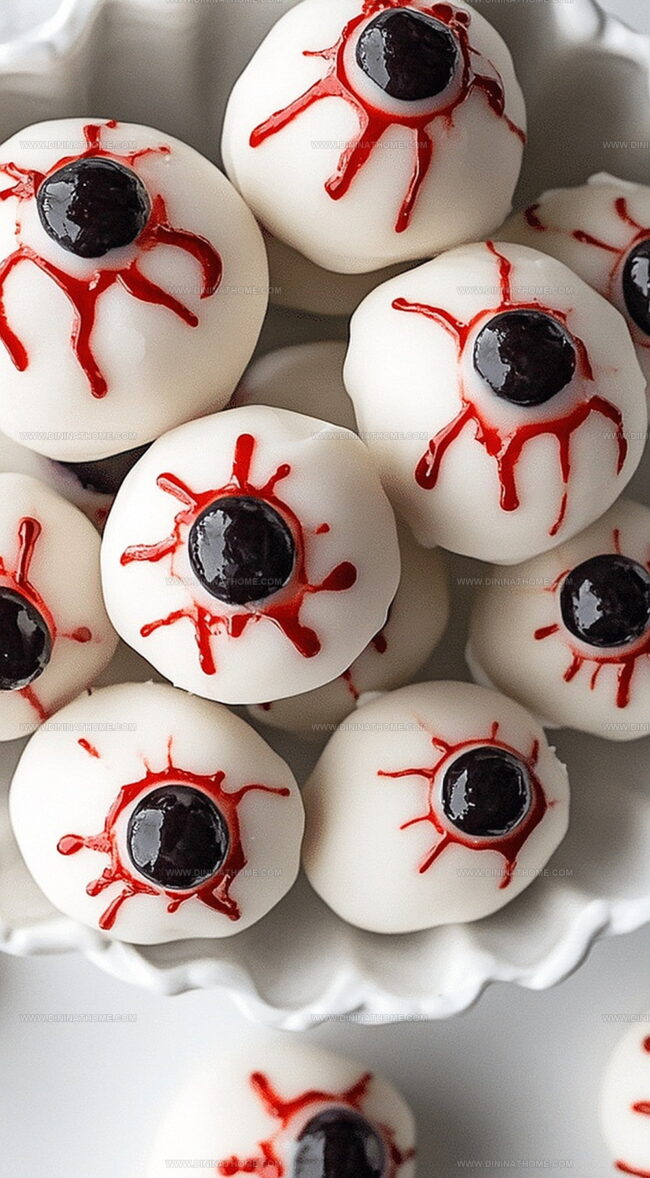 Spine-chilling halloween bloodshot eyeballs candy deliver gruesome delight with creamy white chocolate and realistic red veining. Guests will shriek with playful horror when spotting these eerily realistic sweet treats nestled on party platters.