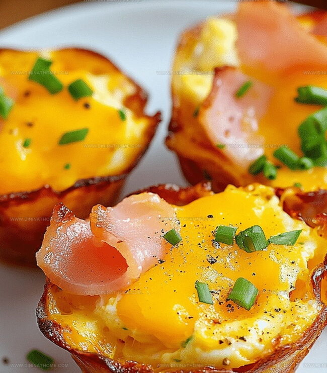 Savory ham and egg cups bring breakfast champions to new heights with their irresistible personal-sized charm. Crispy ham edges cradle perfectly baked eggs, offering a protein-packed morning delight that satisfies hunger and delights taste buds.