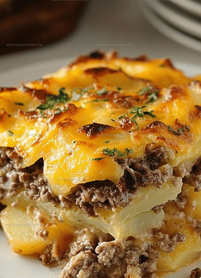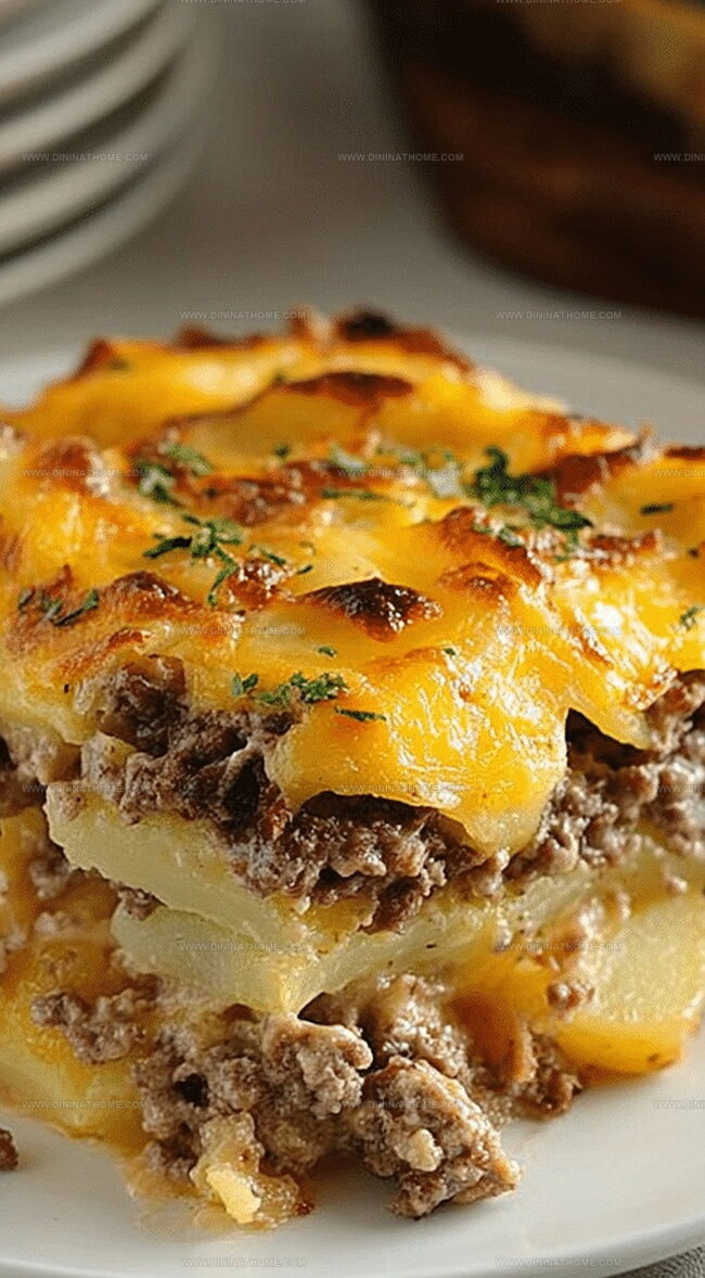 Hearty hamburger and potato casserole delivers comfort straight from midwestern kitchens, blending seasoned ground beef with creamy potato layers. Crispy cheese-topped goodness promises a satisfying meal for hungry families craving classic home-style cooking.