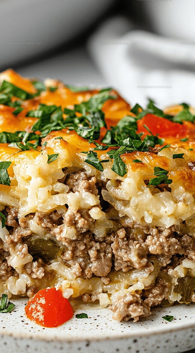 Protein Base:Rice and Liquid Components:Flavor Enhancers and Toppings:Hamburger Rice Casserole Preparation