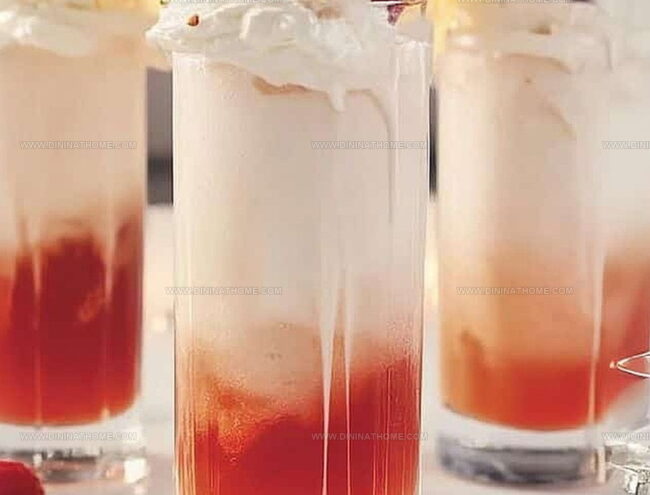 Refreshing italian cream soda blends sweet syrup with sparkling water and cream for a luxurious summer beverage. Cool carbonation and silky texture create an irresistible drink perfect for quenching thirst on warm afternoons.