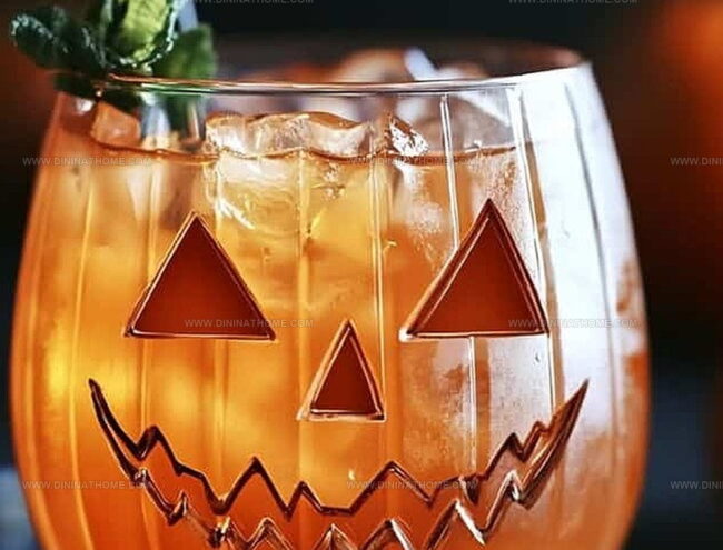 Pumpkin-infused spirits dance with smooth liqueurs, creating a Halloween libation that sparkles with seasonal charm.