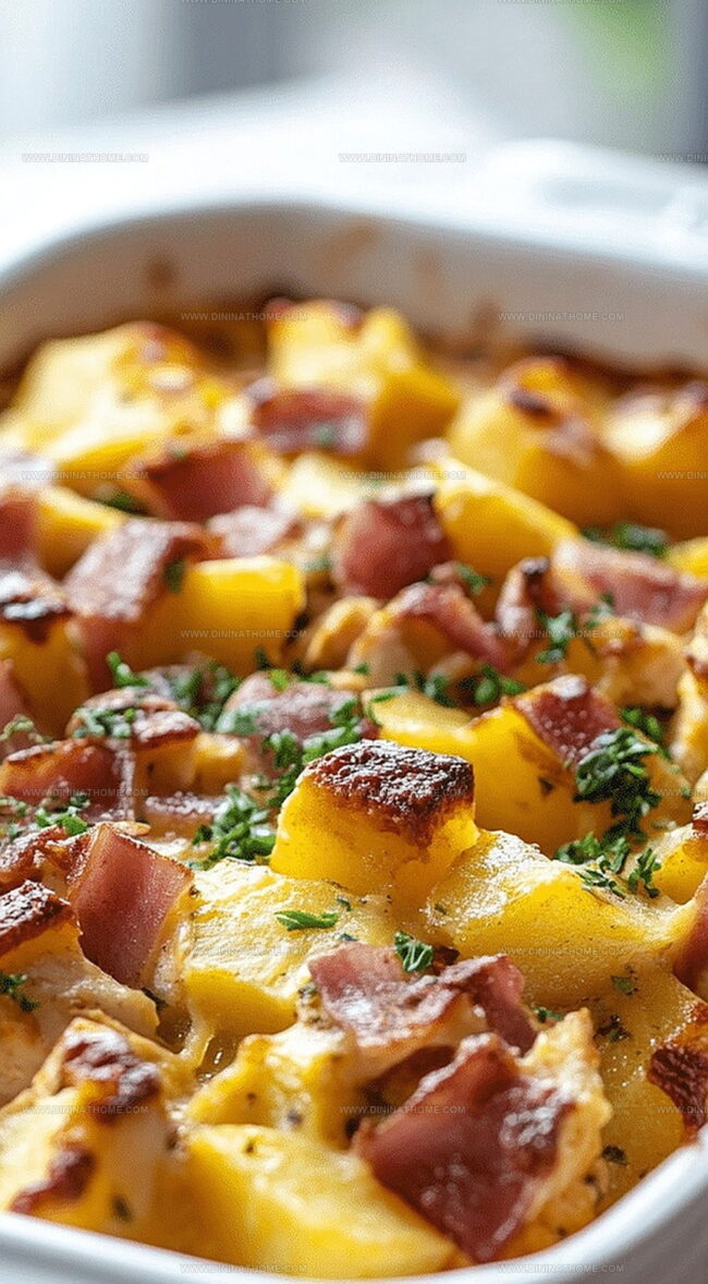 Comfort meets indulgence in this hearty loaded chicken and potato casserole that promises pure satisfaction.