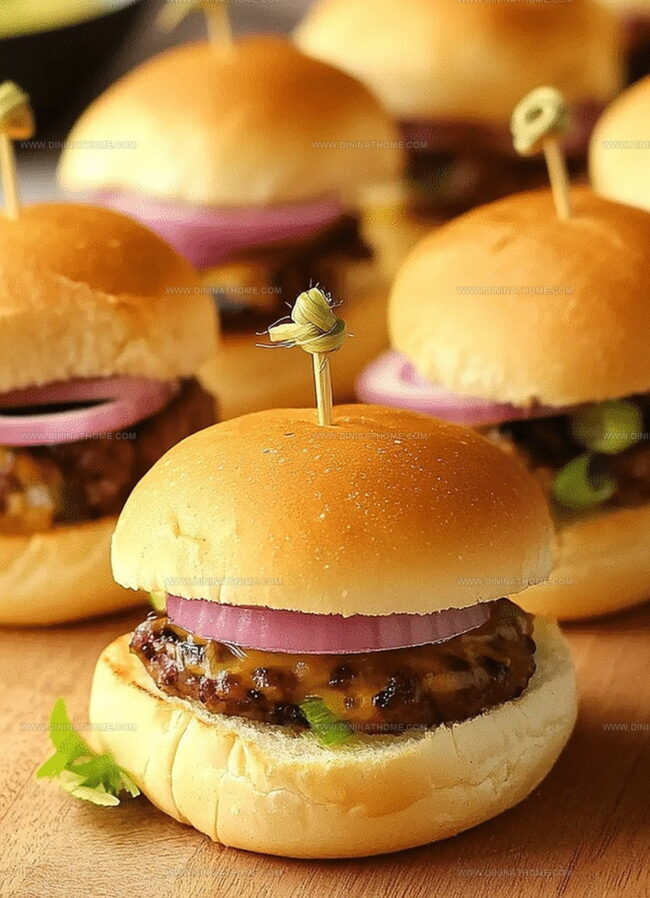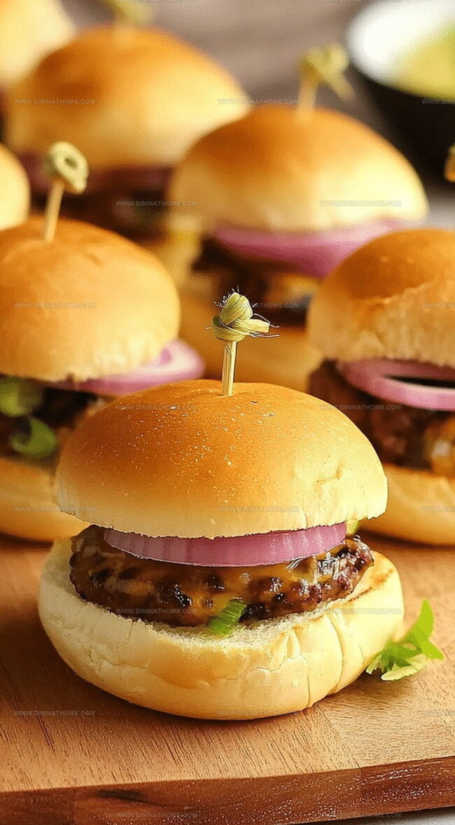 Savor mini sliders that pack big flavor into bite-sized perfection. Delicate beef patties nestled in soft buns deliver a delightful culinary experience you’ll crave at every gathering.