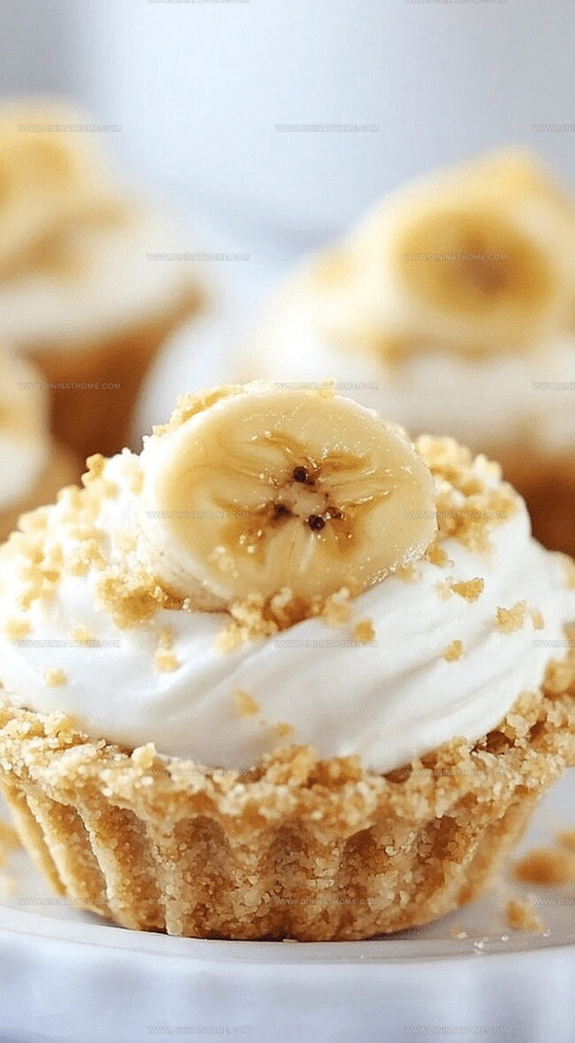 - Before serving, garnish each mini pie with an elegant dollop of additional whipped cream and strategically placed banana slice for visual appeal.