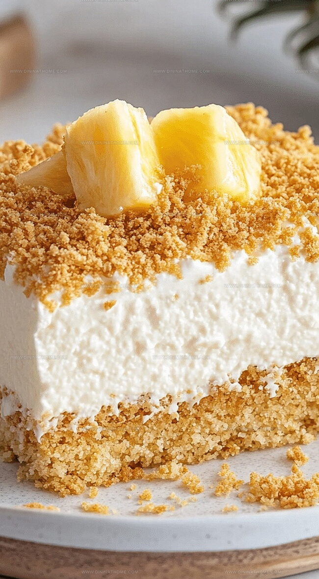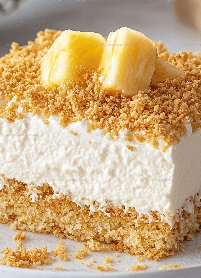 - Before serving, slice into neat squares and optionally garnish with additional pineapple chunks or a sprinkle of graham cracker crumbs for extra visual appeal.