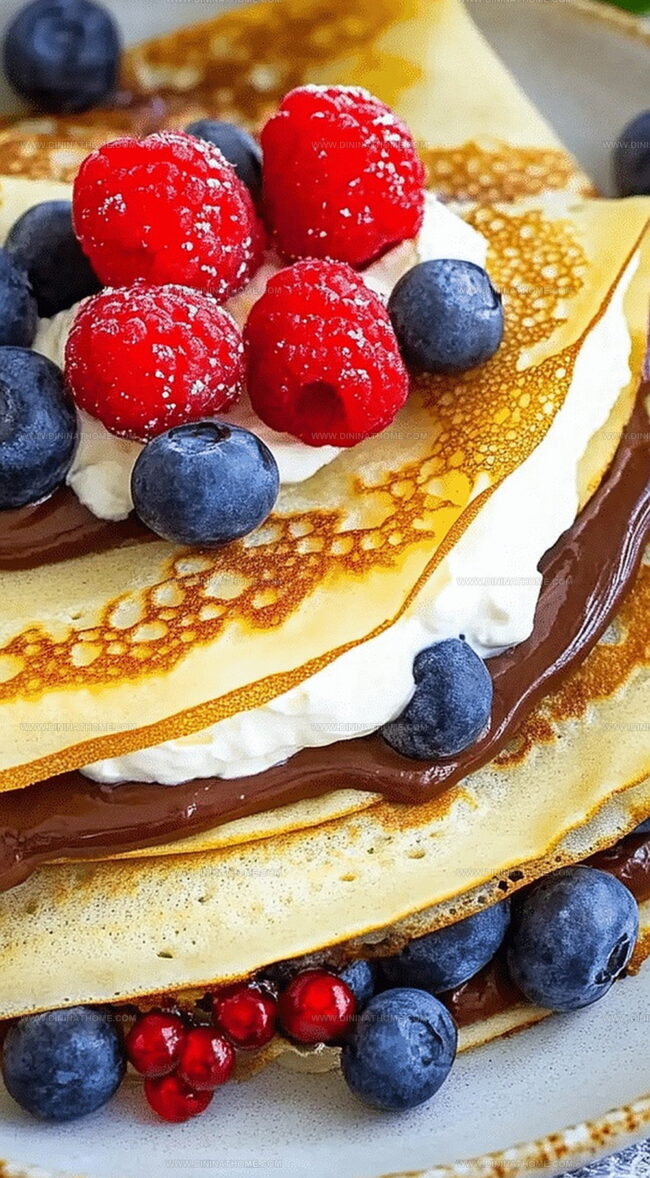Crepe Batter Ingredients:Filling and Topping Ingredients:Finishing Ingredient:Nutella Cream-Filled Crepes Instructions