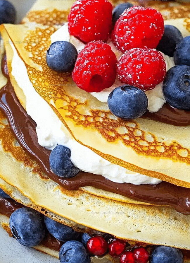 Indulgent Nutella cream-filled crepes bring French culinary magic straight to your kitchen. Delicate pancakes layered with silky chocolate-hazelnut spread promise a delightful dessert that satisfies sweet cravings with elegant simplicity.